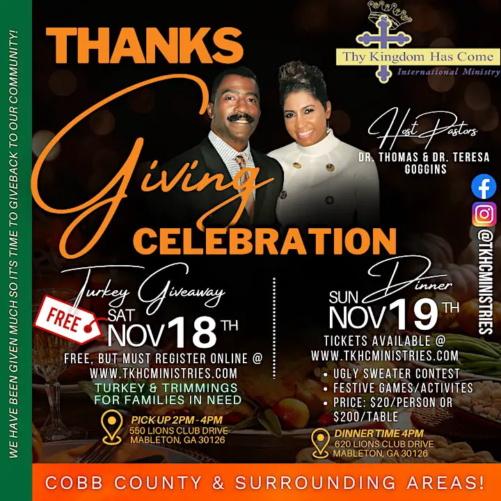 - Thanksgiving Feast – Saturday, November 16th in Atlanta, GA