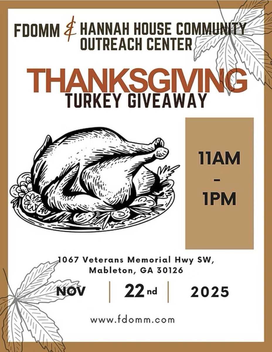 - Community Thanksgiving Meals – Saturday, November 23rd in Griffin, GA