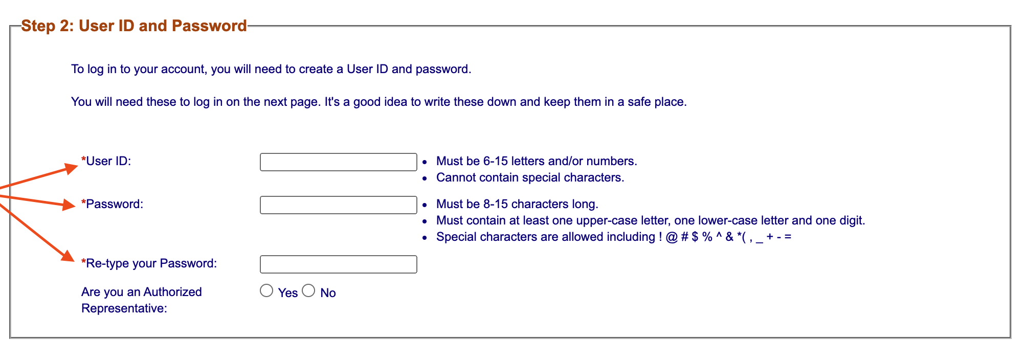 In the next section, you will be asked to create your Gateway.ga.gov User ID and Password. You will use this information login your Georgia Gateway online account. It is important that you choose something that you will remember, but cannot be easily guessed.