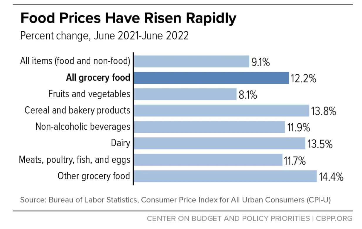 Inflation has had a significant impact on low income families that rely on monthly food assistance to get by. In fact, the average cost of groceries has risen 12.2 percent in the last 12 months. That’s the largest 12-month increase in over 43 years (April 1979).
