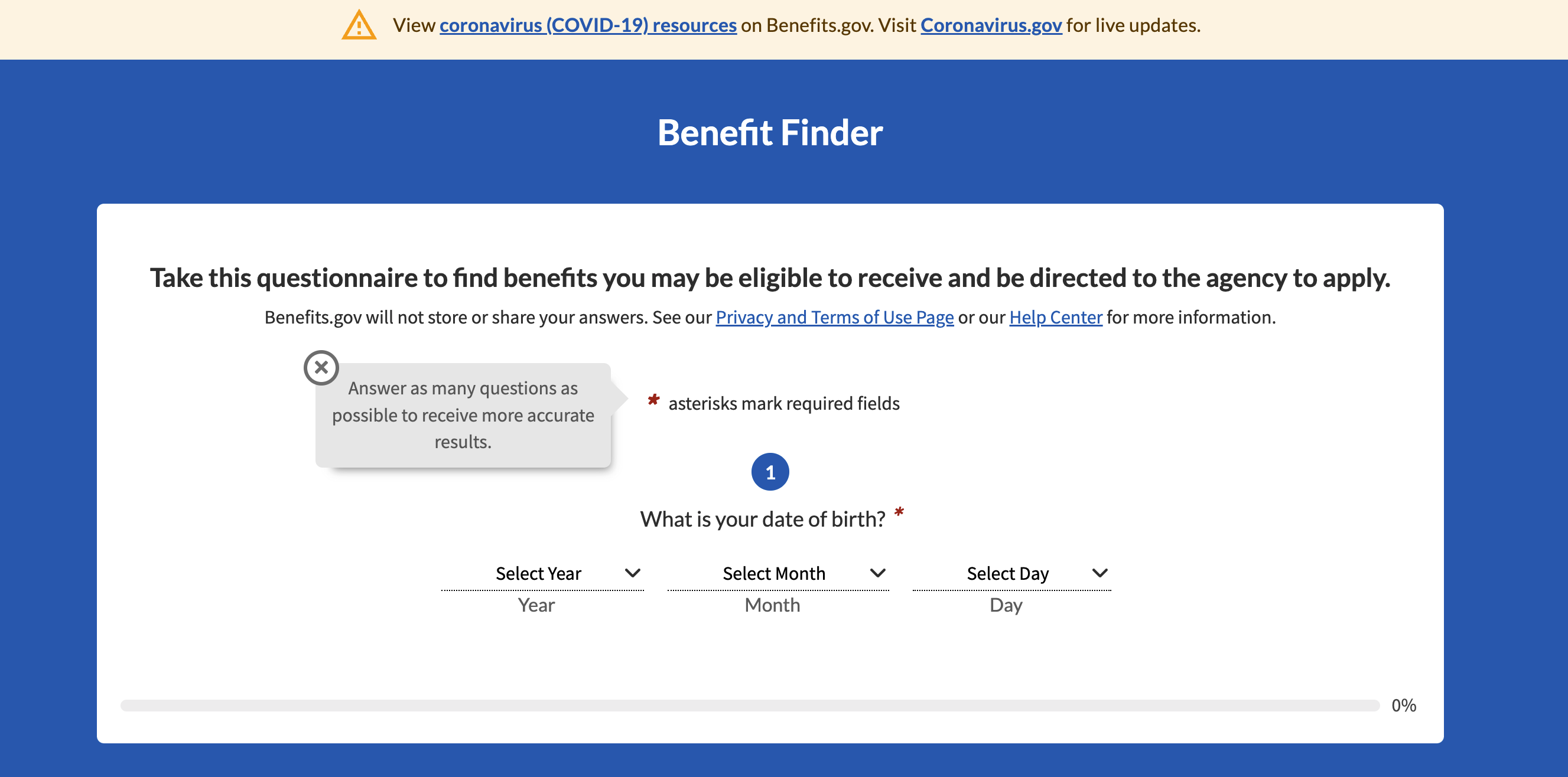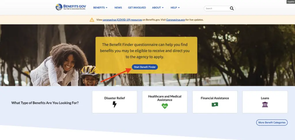 To do so, click the text that says, “Start Benefit Finder” – as seen in the screenshot above.