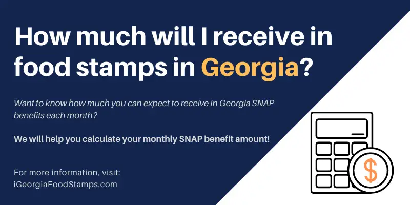 The Georgia Food Stamp Calculator tells you exactly how much you will receive in monthly benefits.