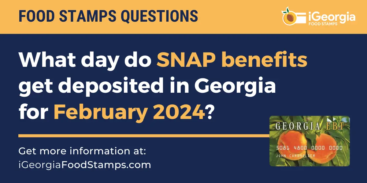 SNAP households in all Georgia counties will have their food stamp benefits deposited into their EBT Card account between February 5th and February 23rd.