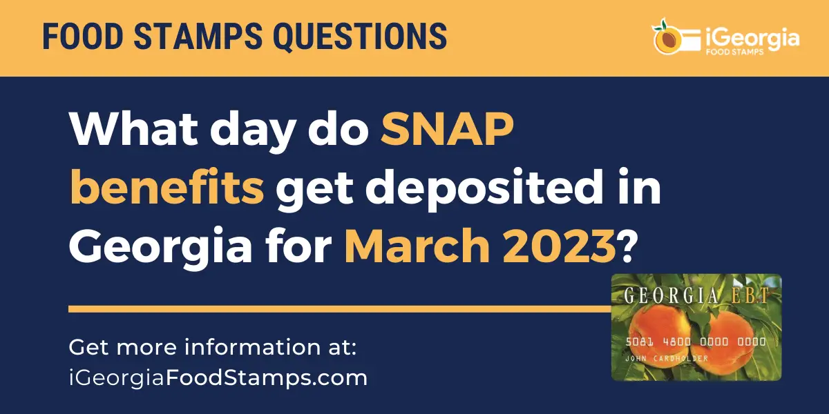 SNAP households in all Georgia counties will have their food stamp benefits deposited into their EBT Card account between March 5th and March 23rd.