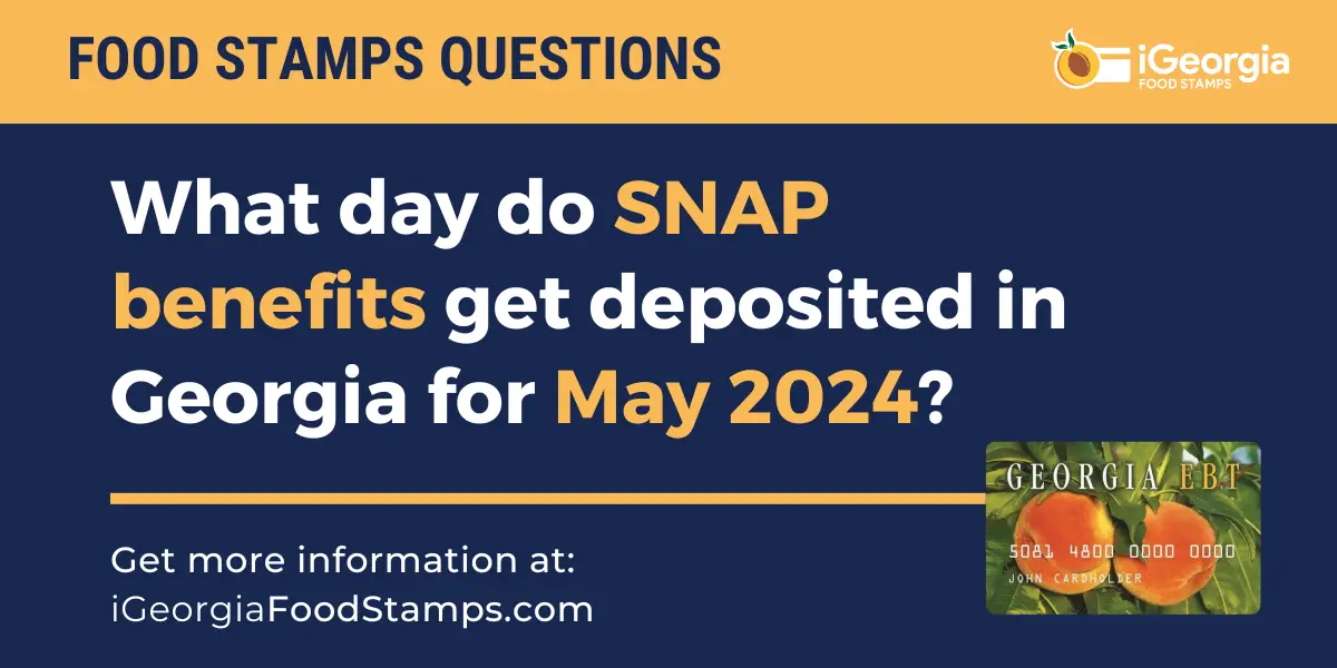SNAP households in all Georgia counties will have their food stamp benefits deposited into their EBT Card account between May 5th and May 23rd.
