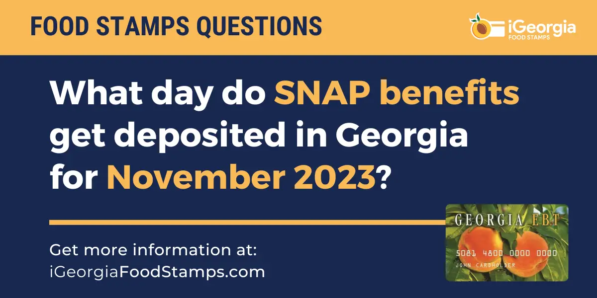 SNAP households in all Georgia counties will have their food stamp benefits deposited into their EBT Card account between November 5th and November 23rd.